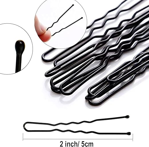 100 Black U-Shaped Bobby Pins for Women – Bridal Hair Grips in Plastic Box