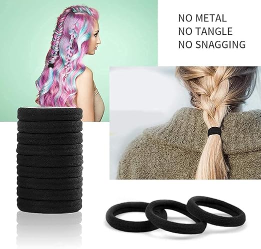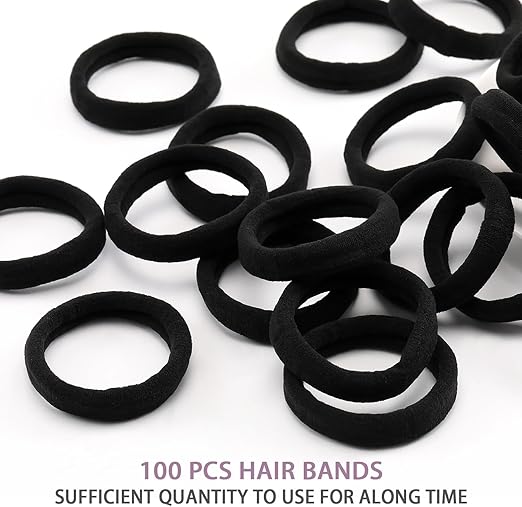100PCS Black Hair Ties for Women – Thick Seamless Elastic No-Crease Hair Bands