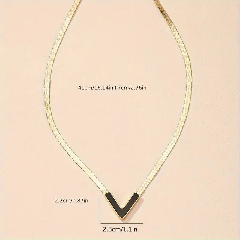 Elegant V-shaped pendant necklace with 18K gold plating. A minimalist and stylish accessory, perfect for daily wear or as a thoughtful gift.