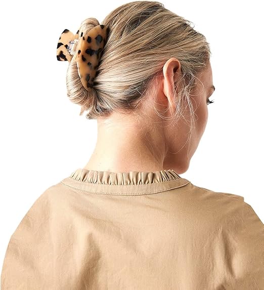 Stylish 2-piece set of large banana hair claw clips in classic tortoise and leopard print. Made with durable celluloid in a chic French design, these barrettes are perfect for securing thick hair and adding a touch of fashion to any look.