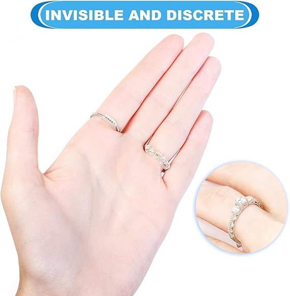 Keep your rings snug and secure with this set of 12 clear spiral silicone ring adjusters. Designed for both men and women, these soft, invisible adjusters come in 4 different sizes to fit various ring types. Ideal for loose rings, they are easy to apply, comfortable to wear, and prevent ring loss without resizing.