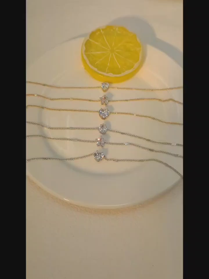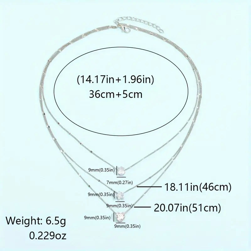 Crystal Zirconia Charm Layered Necklace Set – Heart, Star & Square Pendants for Women