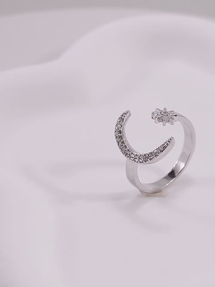 Elegant crescent-shaped ring made of zinc alloy. A minimalist piece perfect for daily wear or as a thoughtful gift for Eid or Ramadan.