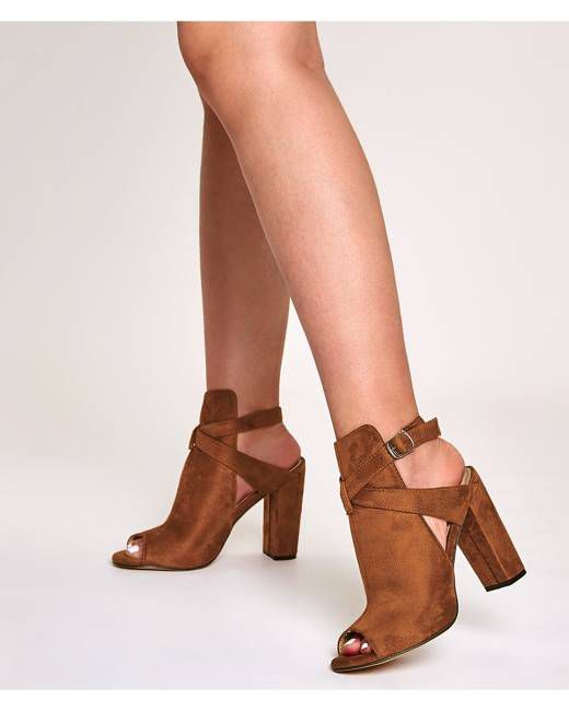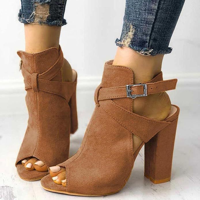 Women’s Chunky Block High Heels – Peep Toe Leather Suede Sandals for Party